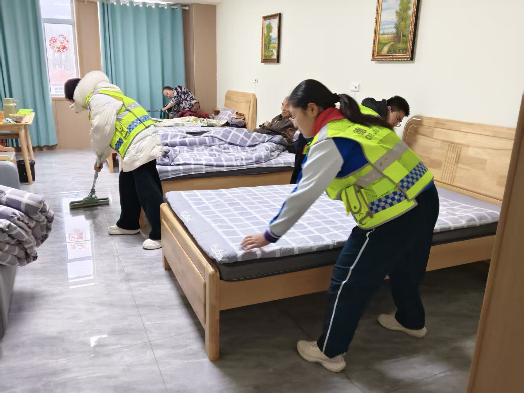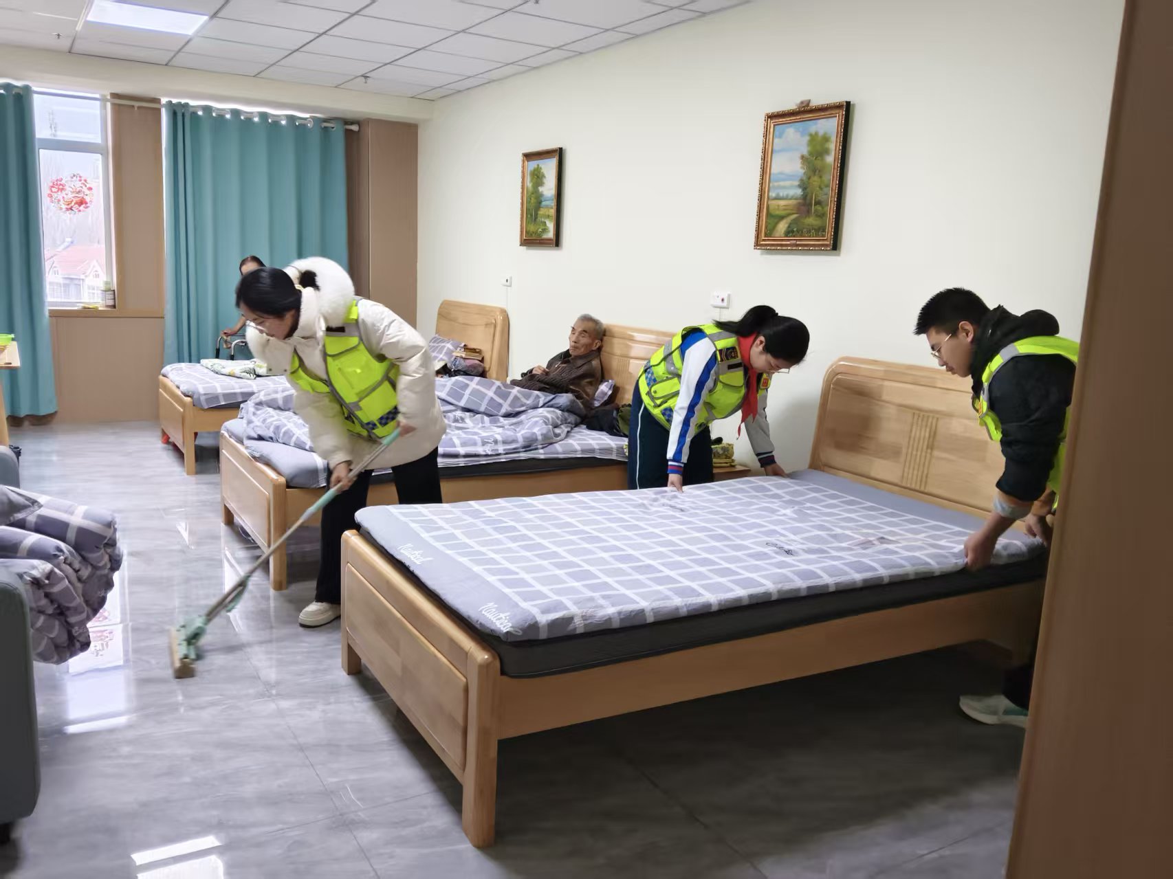 德聚公益服务中心爱心陪护,培养孩子尊老爱幼的优良美德。本次活动去养老院帮忙打扫卫生收拾床铺,送上晚辈得一份爱。