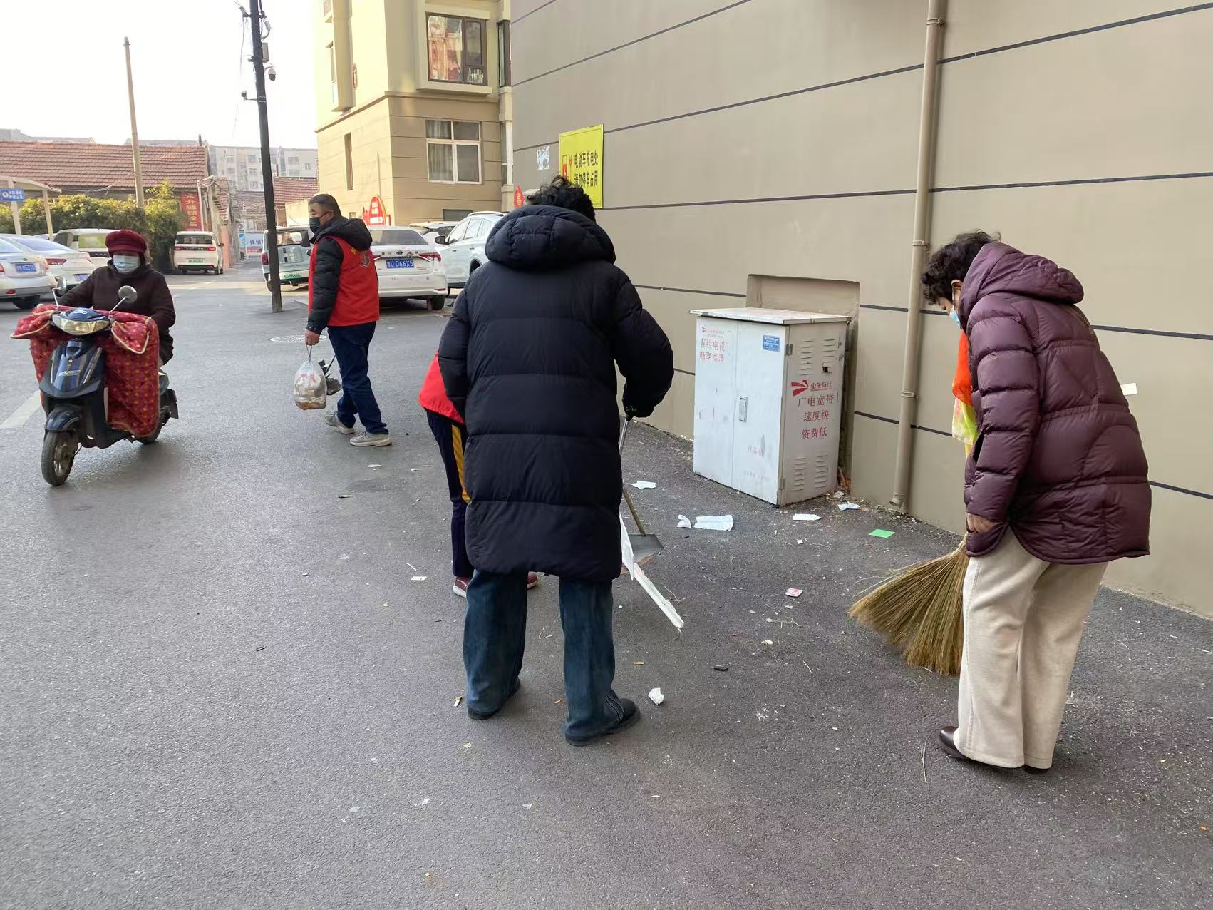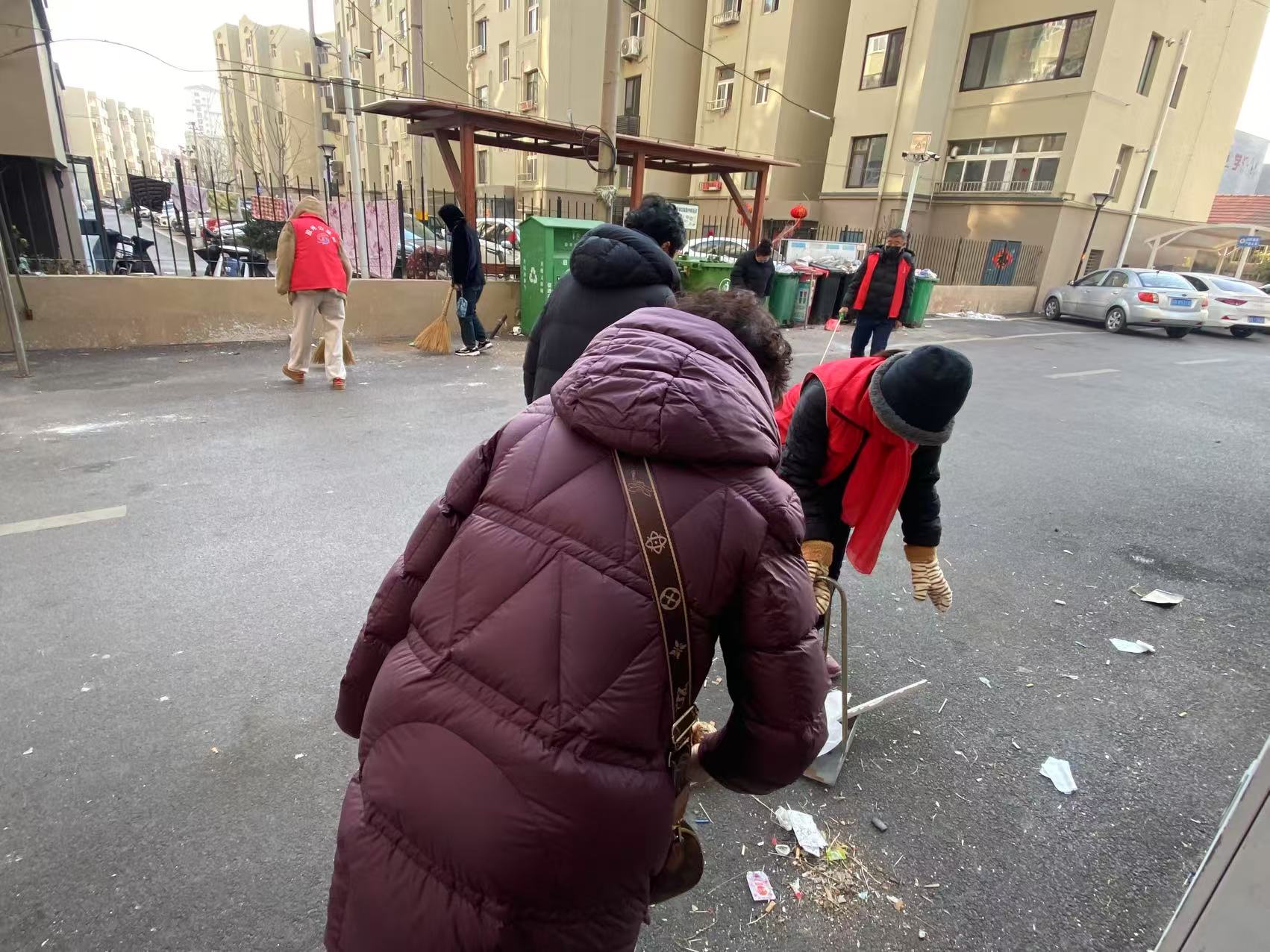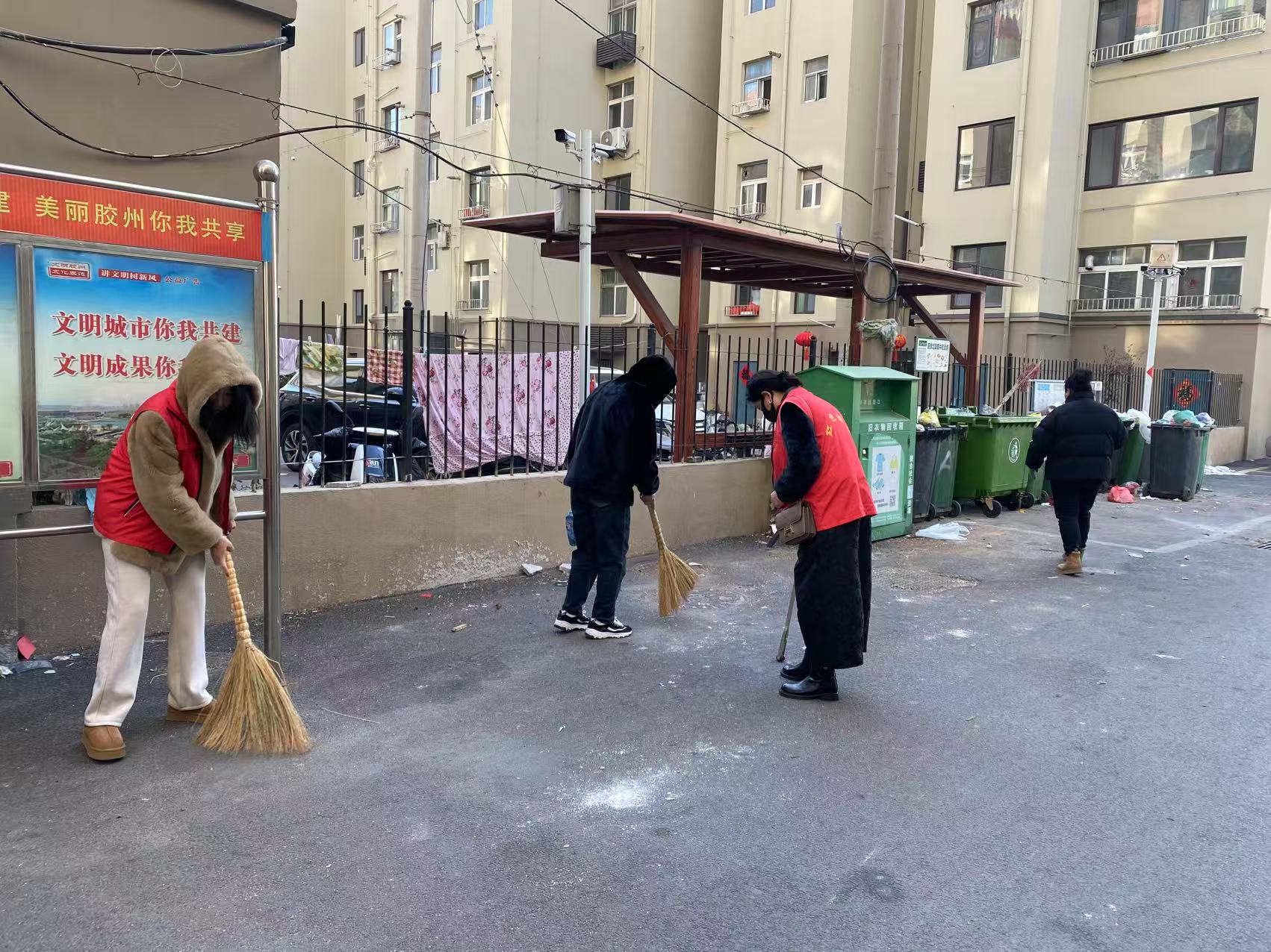 社区工作人员与志愿者们手持铁钳、夹子、垃圾袋等工具,深入辖区路边的绿化带,对小区里塑料袋、烟蒂、纸屑、枯枝落叶等垃圾进行“地毯式”清理。