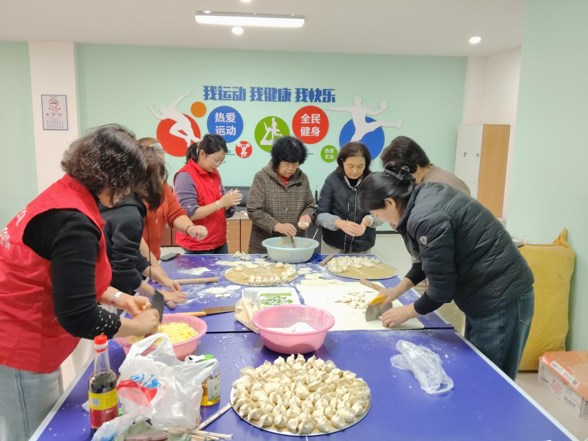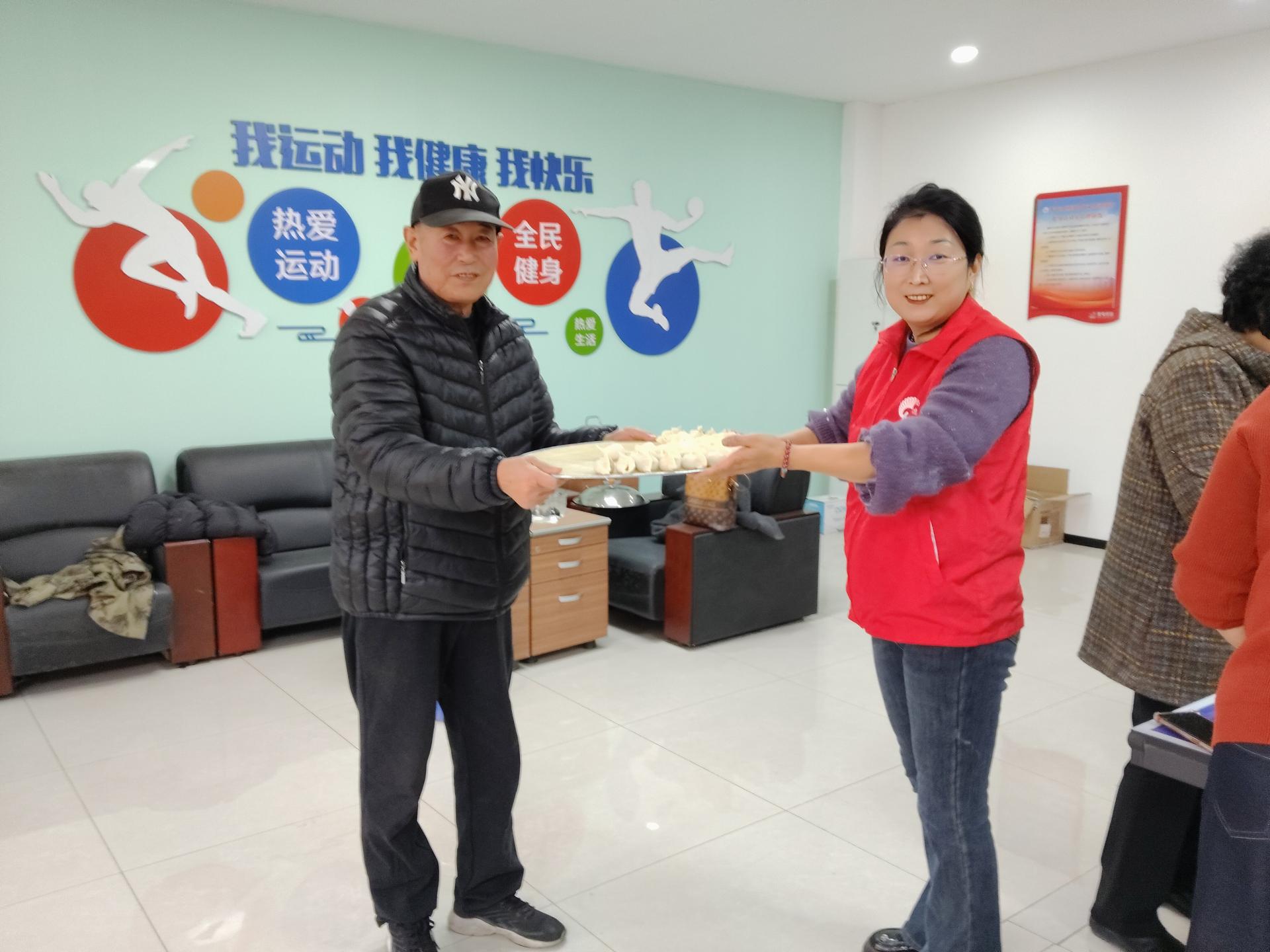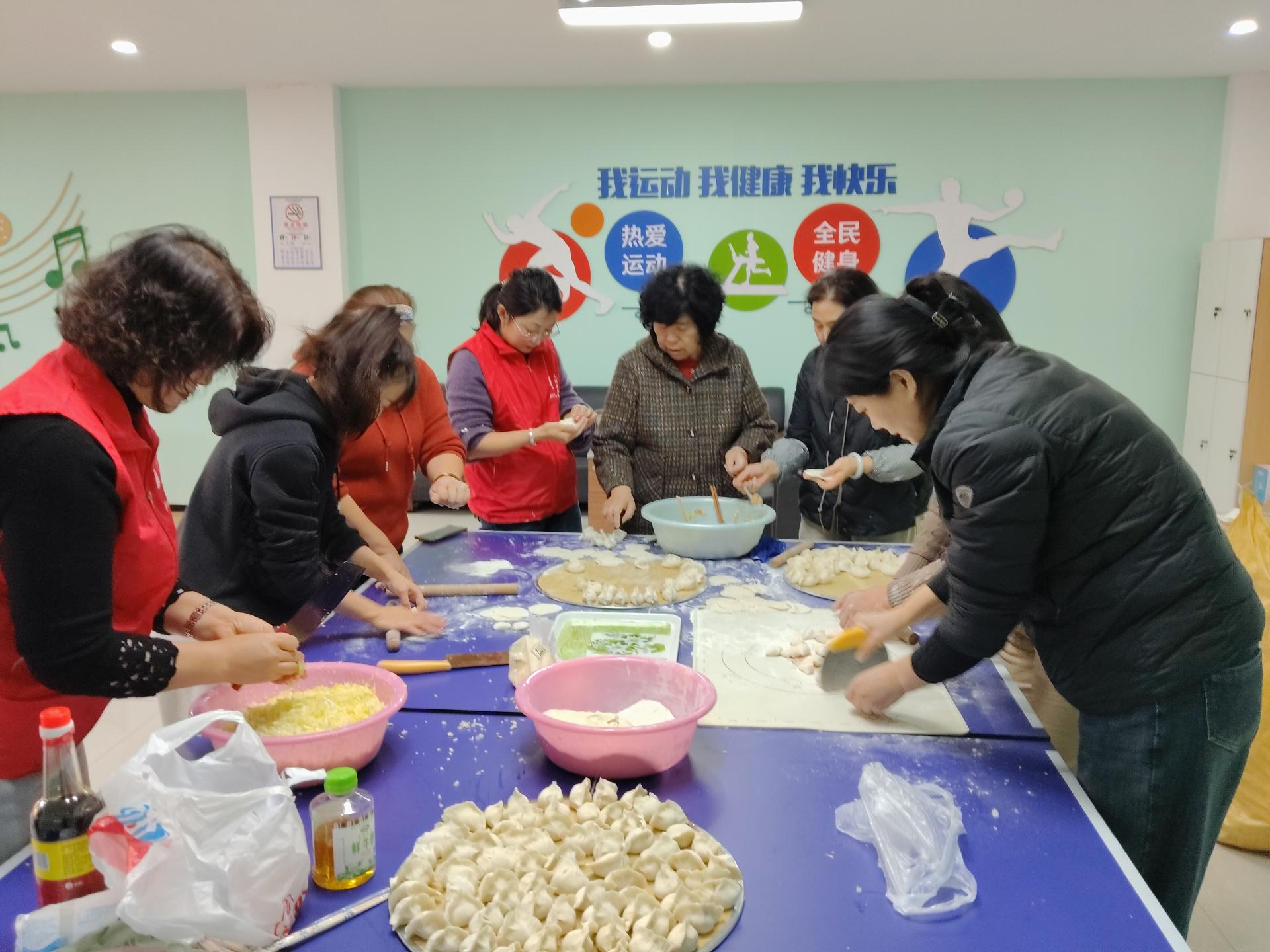 胶州市李哥庄镇龙屯社区组织志愿者与居民在冬至来临之际,为社区特殊家庭独居老人包饺子,为社区居民送去温暖