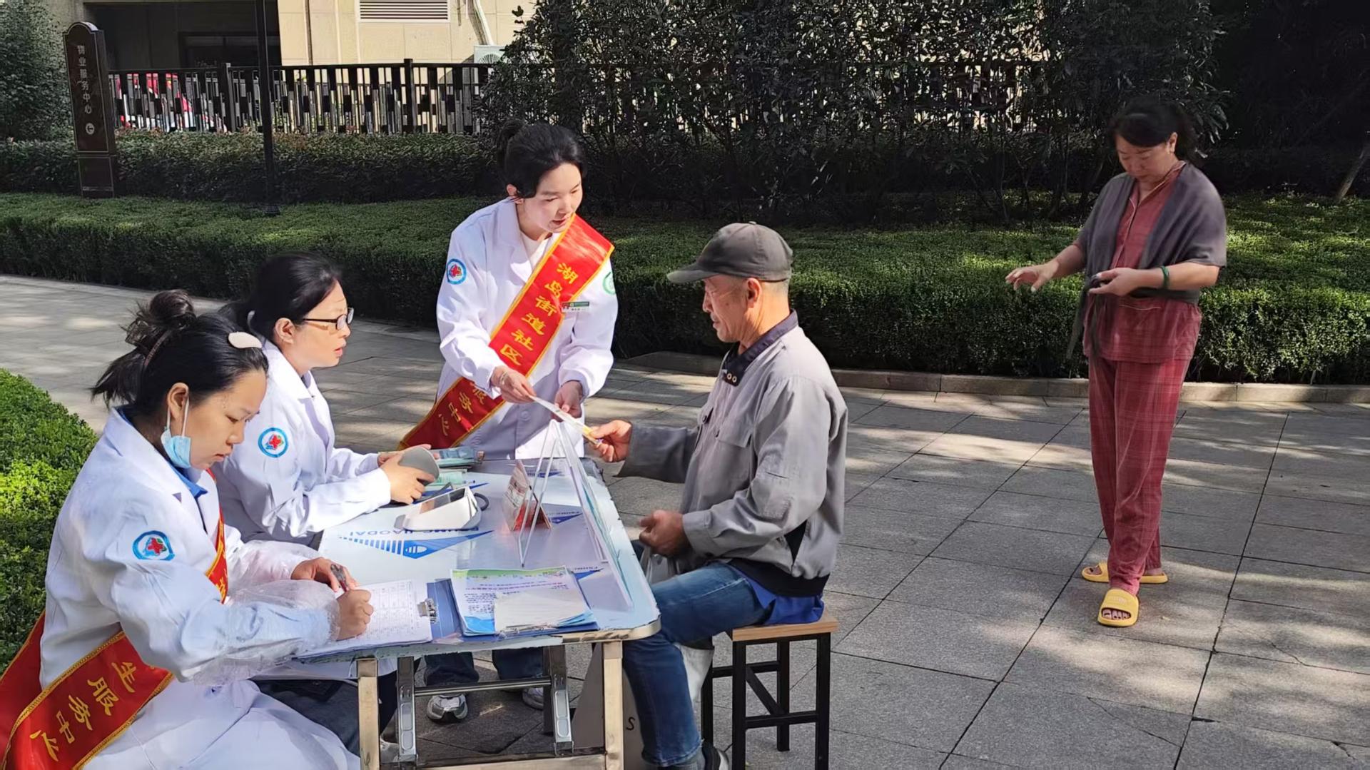 湖岛中心走进社区,提供免费测量血压和健康科普服务,持续关心关爱老年人,为老年人的晚年健康生活保健护航。