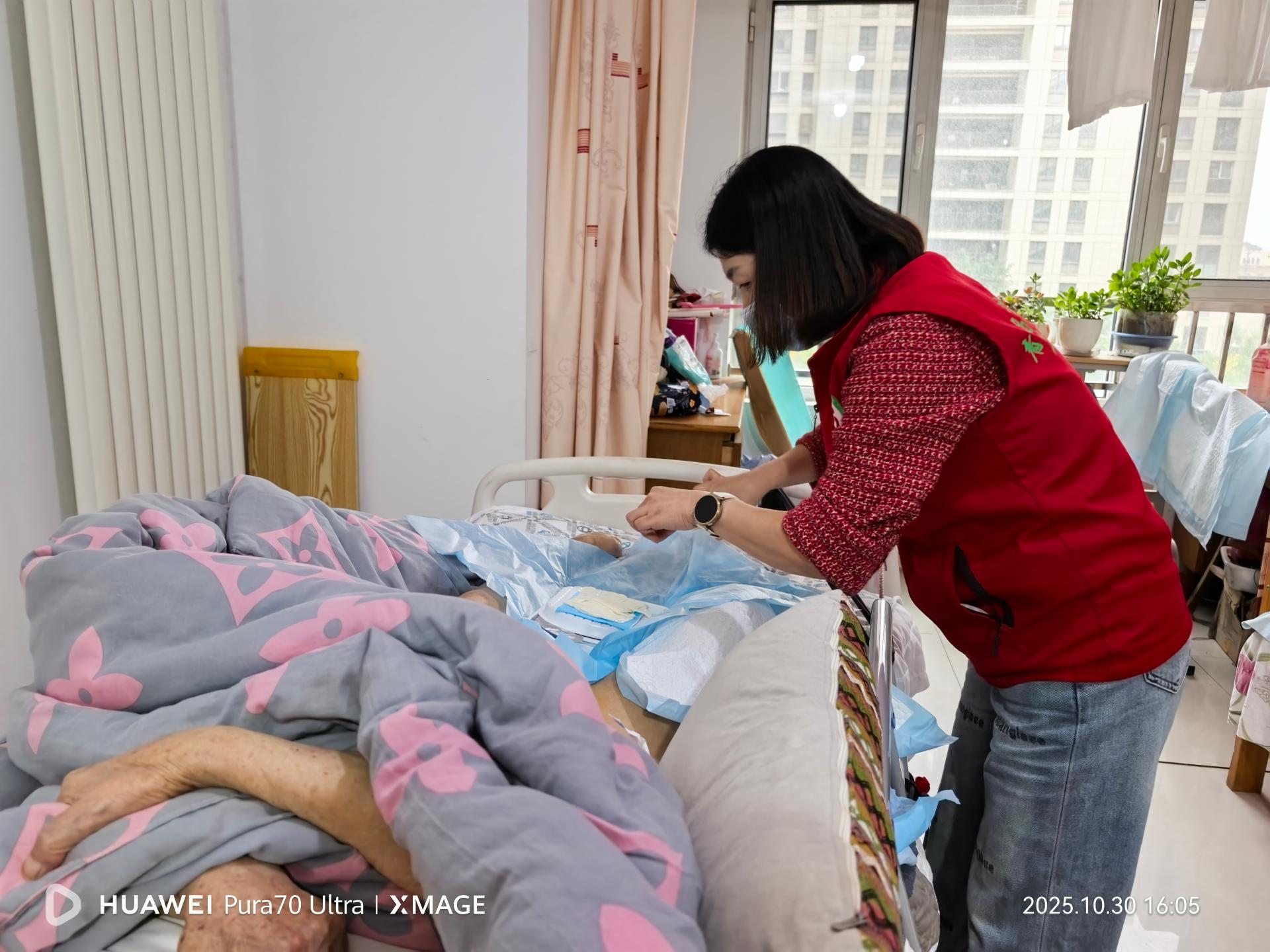 “温馨守护——用心关爱老年人健 康”入户为老年人进行导尿指导膀胱冲洗