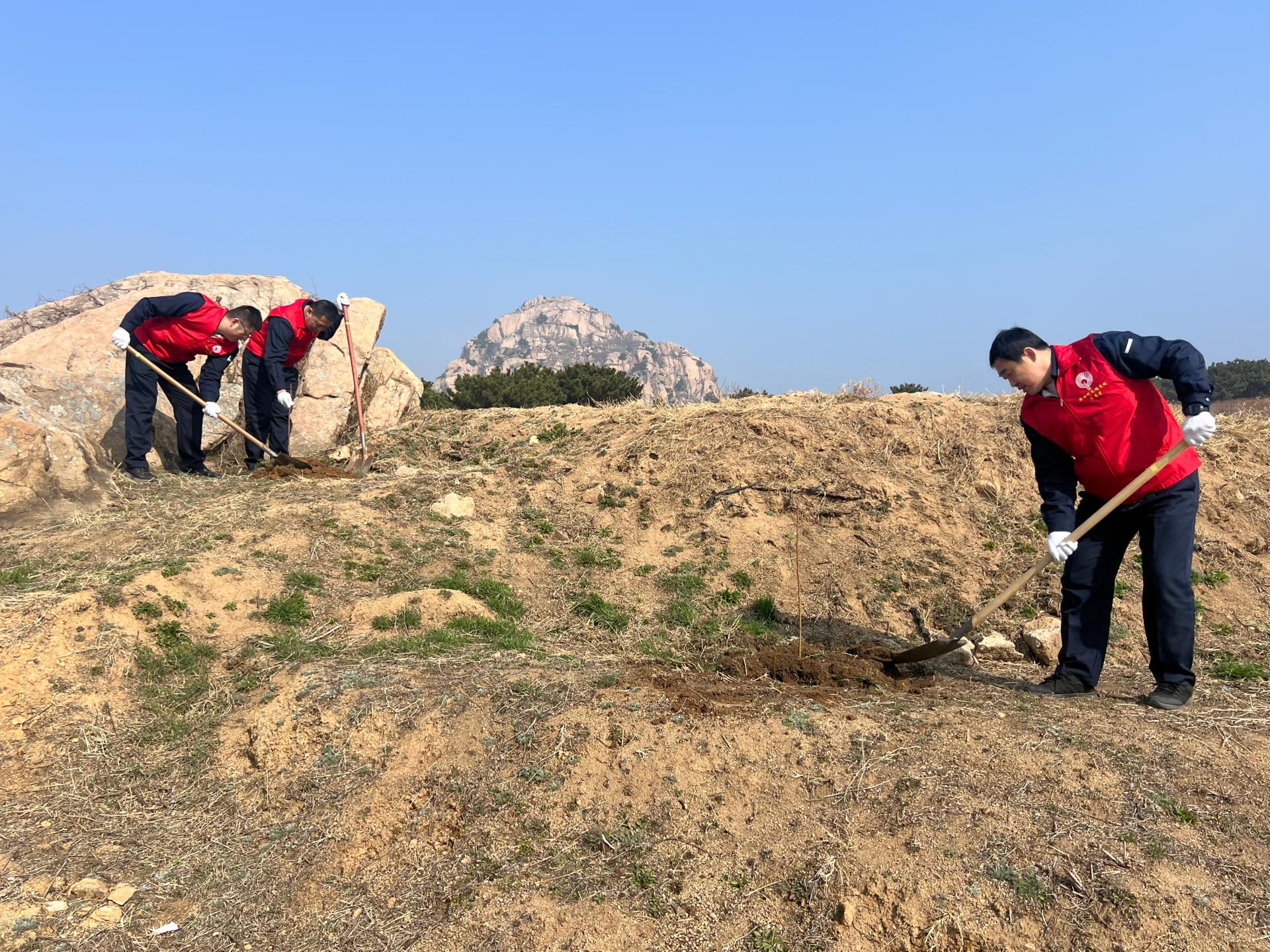 珠光路社区联合海高集团、灵山卫街道森林防火办公室、崮上合作社并邀请西海岸生态环境分局参与,在小珠山的进行植绿补绿。 山林间,大家分工协作,扶苗、培土、踩实、浇水,每一个环节都一丝不苟。经过一上午的辛勤劳动,一株株新绿迎风挺立,为初春的小珠山增添了勃勃生机。 “愿小树茁壮成长,守护绿水青山”、“希望家人平安健康”、“共建幸福珠光路”……一张张承载着祝福与梦想的心愿卡被系在树枝上,随风轻舞。这不仅是一棵树,更是一份承诺、一份希望。