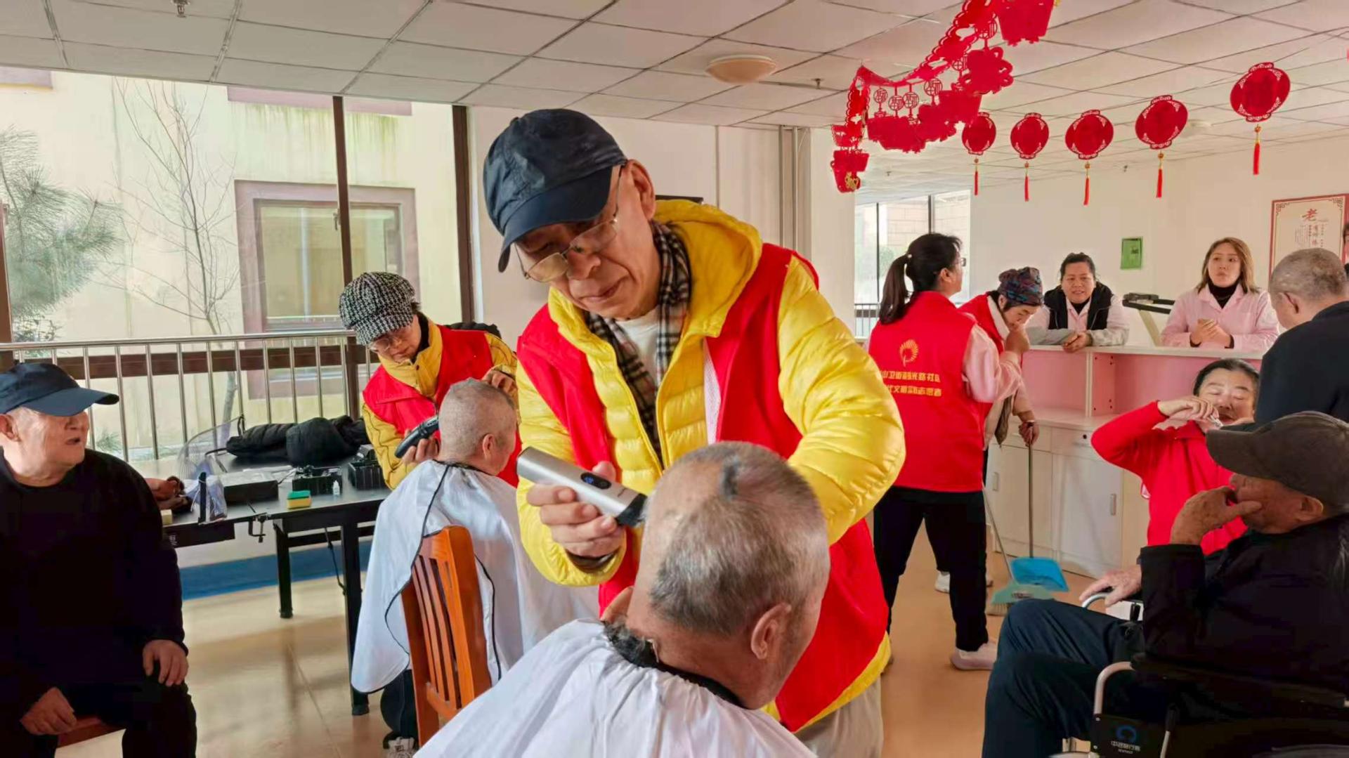 珠光路社区逐光志愿者相约来到西海岸新区社会福利中心,以指尖的细致、耳畔的倾听、歌声的悠扬,为老人们送上一场不打烊的温暖陪伴。 一把推子、一副指甲剪、一颗赤诚的心,是志愿者们的“新年行囊”。理发区里,志愿者化身专属理发师,细心询问老人的发型偏好,梳发、修剪、碎发轻扫,动作轻柔又娴熟。原本略显凌乱的银发变得清爽利落,老人们对着镜子笑眼弯弯,连说“精神多了,过年就该有个新模样”。 一句问候、一次修剪、一场合唱,都是藏在细节里的爱。对老人们而言,这份陪伴不止是生活上的照料,更是被惦记、被温暖的安心;对志愿者而言,每一次俯身与倾听,都是初心的践行,是“逐光”之名最真切的诠释。 桑榆非晚,暖阳常伴。珠光路