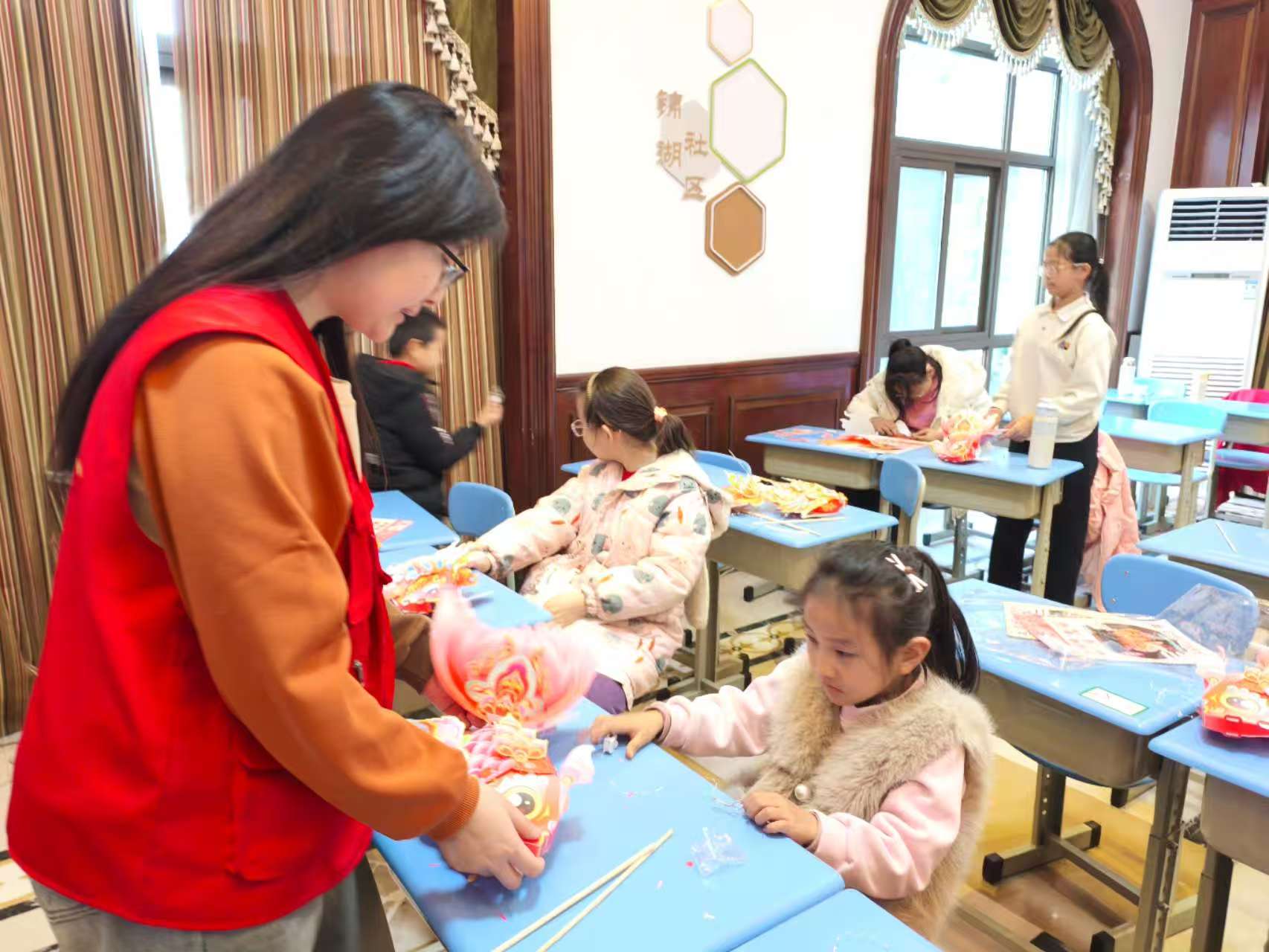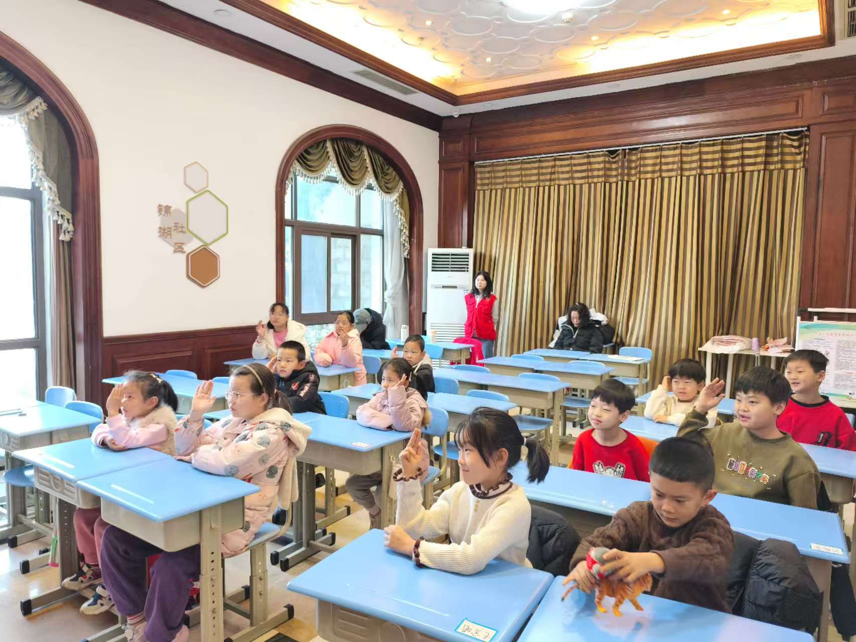 锦湖社区寒假青少年爱心托管志愿服务活动 为进一步发挥社区服务群众作用,有效缓解辖区青少年儿童寒假"看护难"的问题,锦湖社区开展了寒假青少年爱心托管活动,通过开展传统文化课程、丰富多彩的特色手工课程和趣味体育活动,培养孩子们互助互爱、团队协作、动手操作等能力,满足孩子们多样化、个性化的活动需求。