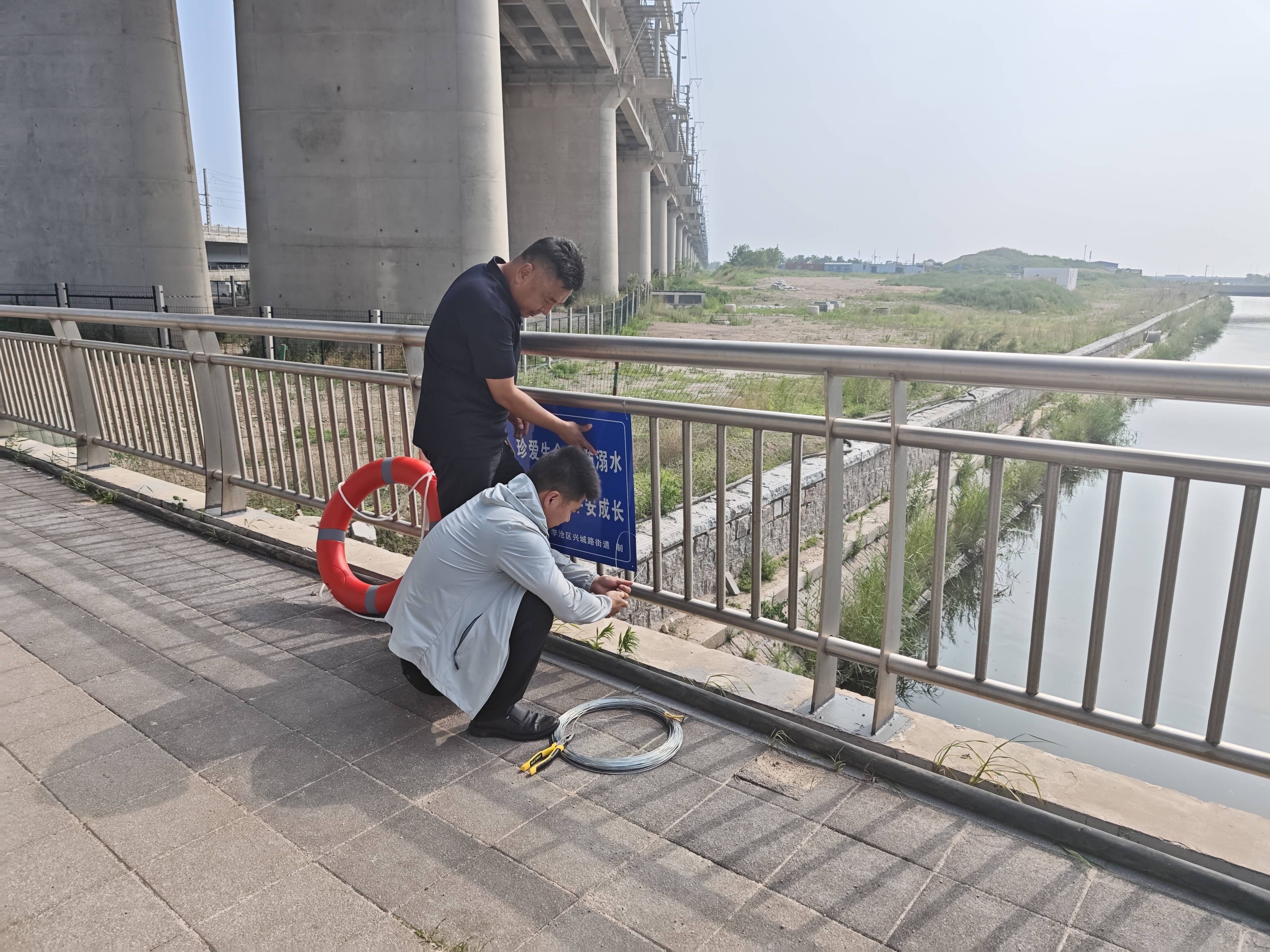 巡河成员对辖区内重点水域展开排查,重点检查河道周边环境是否整洁、警示标识是否清晰、防护设施是否完好、防溺水救生设备是否齐全,对重点河道区域添设警示牌,以确保其能够起到有效的警示作用。针对部分河道存在的救生圈缺失问题,及时增添安装救生圈2个。