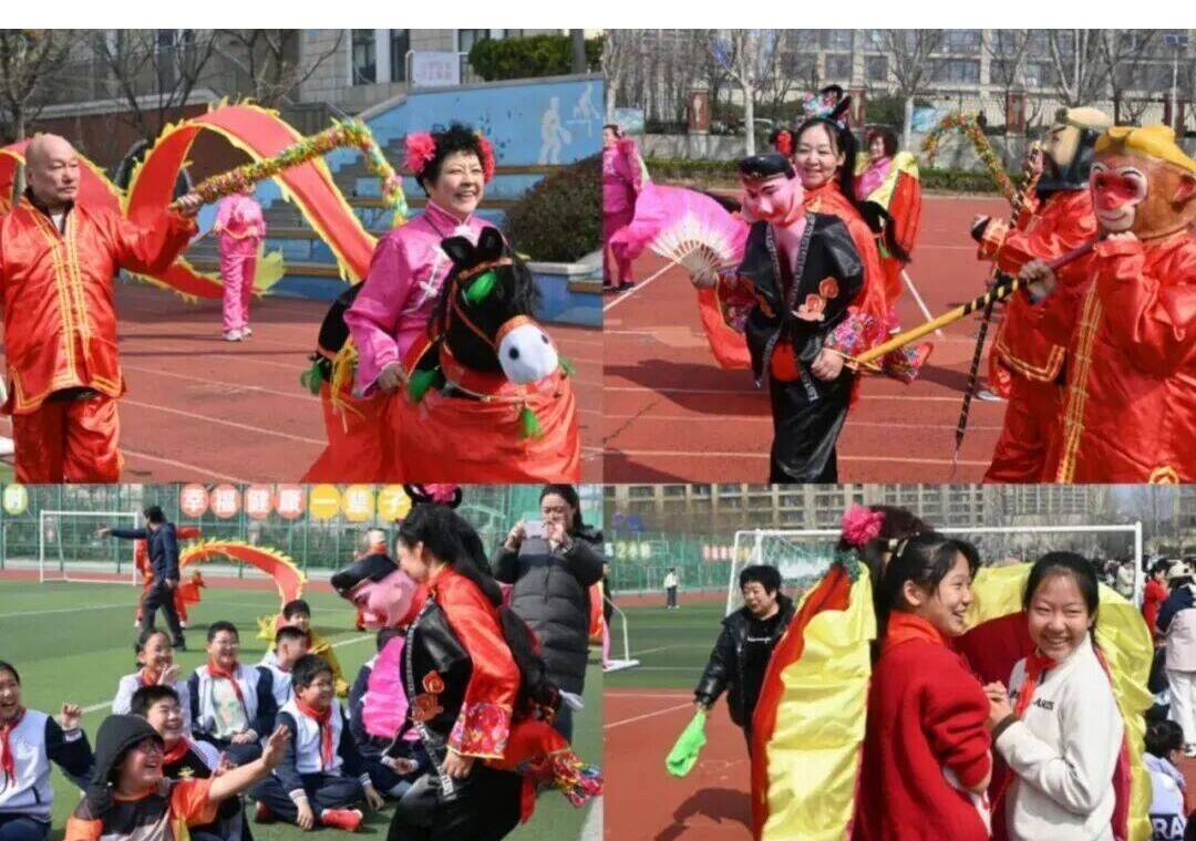 巡演互动中,秧歌队的阿姨们还教孩子们扭上了秧歌,操场成了欢乐的海洋。