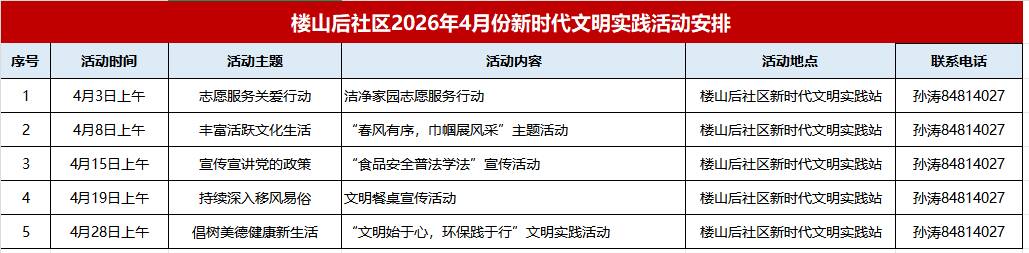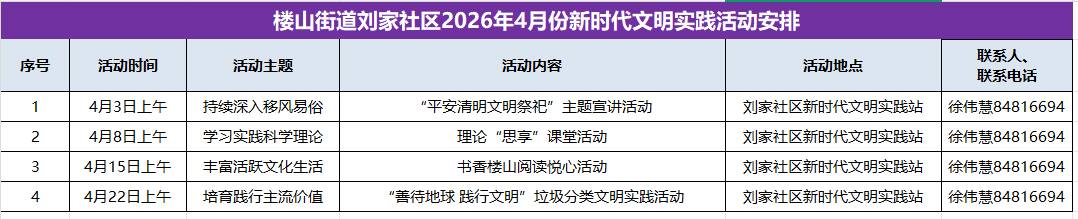 【新锋楼山 文明实践】楼山街道2026年4月新时代文明实践活动计划上新