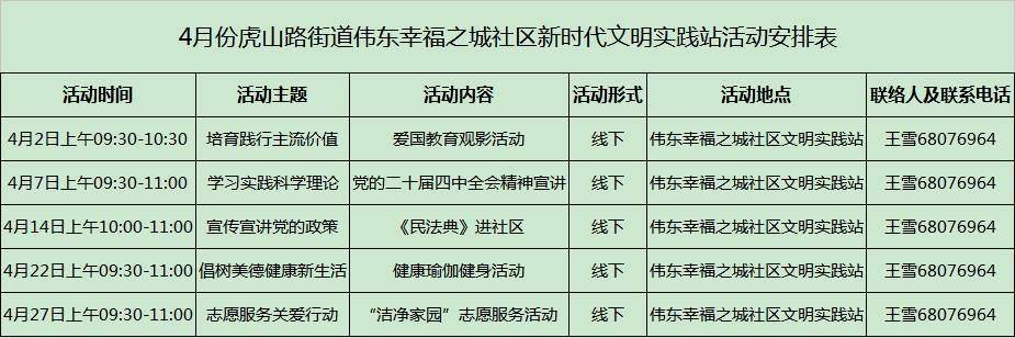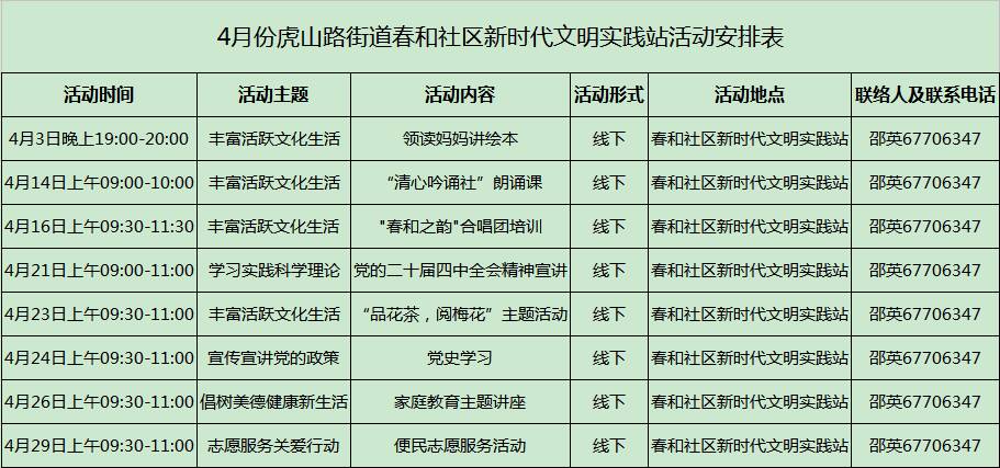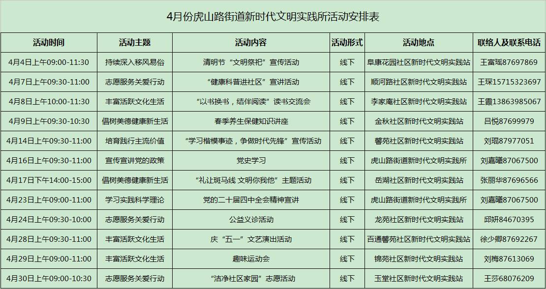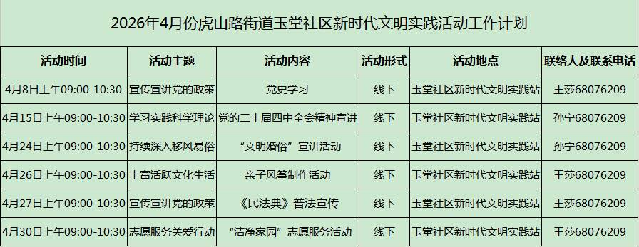 【文明实践 绽放李沧】虎山路街道2026年4月份新时代文明实践活动计划