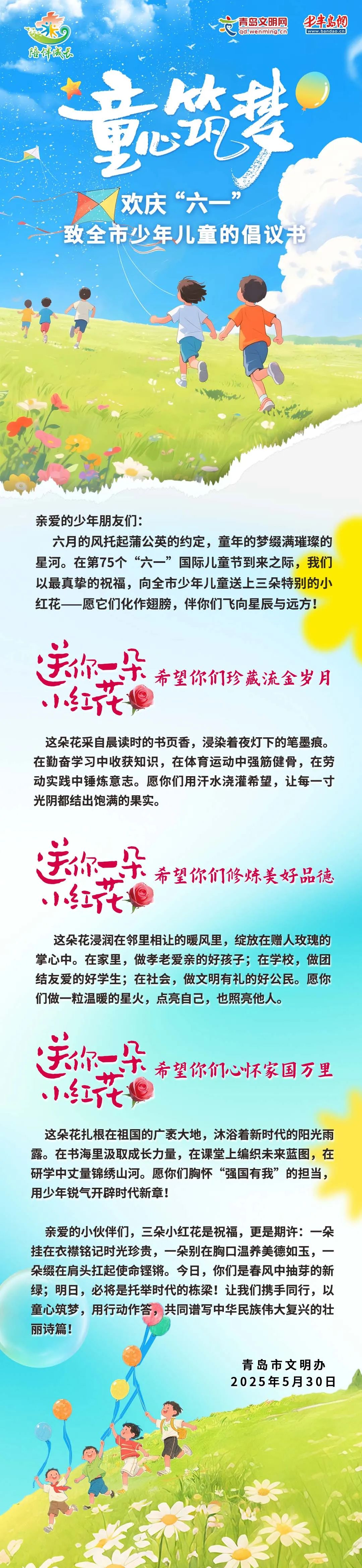 童心筑梦 欢庆“六一” 致全市少年儿童的倡议书