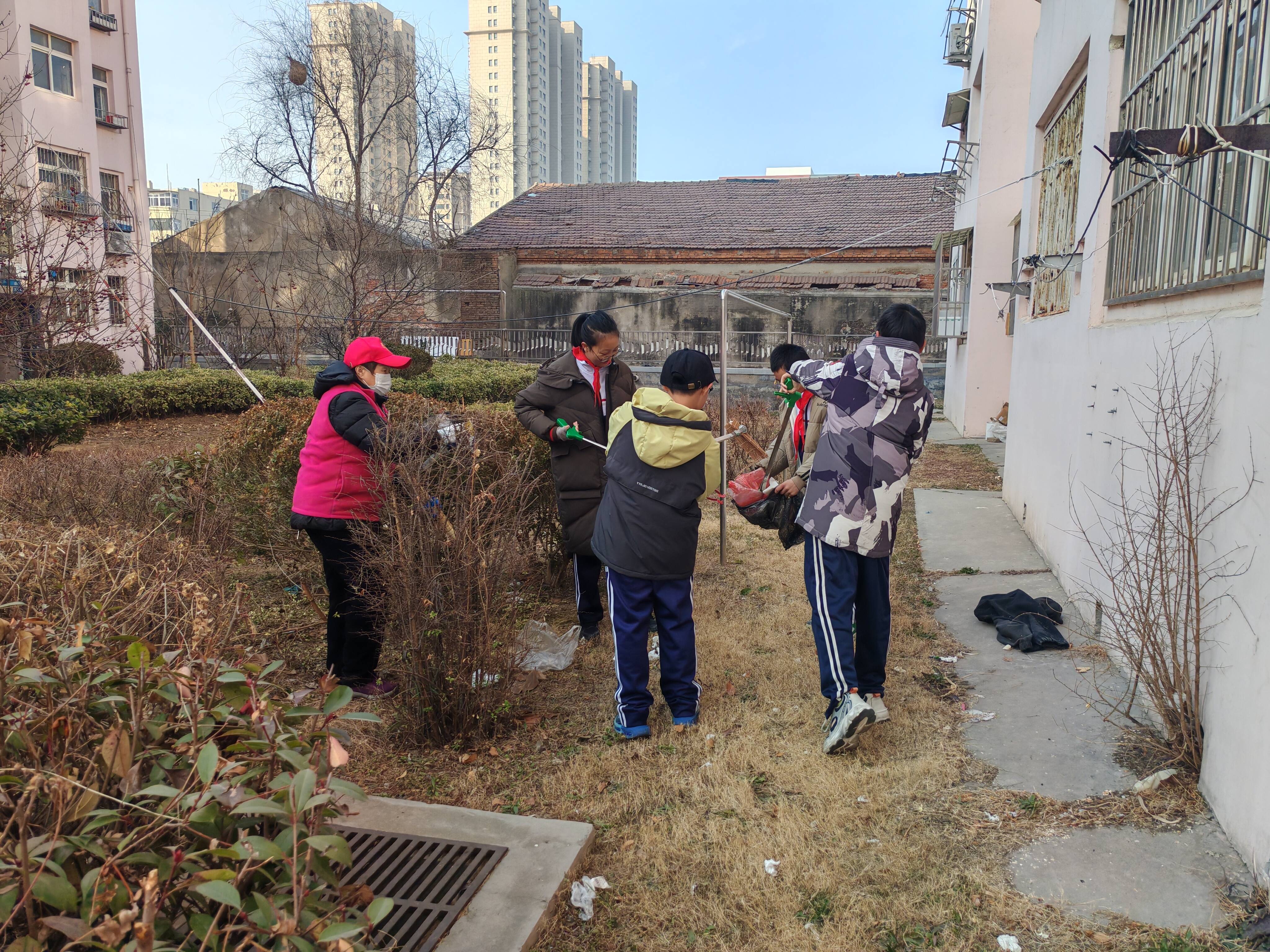 【我在新时代文明实践站过寒假】【核心价值观我践行】党建聚合力 洁净迎新春——兴华路街道永平路社区联合青岛33中开展家园清洁志愿服务活动